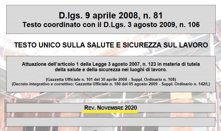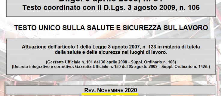 Il testo integrale del D. Lgs. 81/2008 edizione novembre 2020 è scaricabile al link: