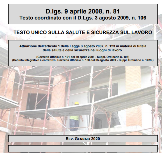 NUOVO AGGIORNAMENTO TESTO UNICO SULLA SALUTE E SICUREZZA SUL LAVORO – GENNAIO 2020